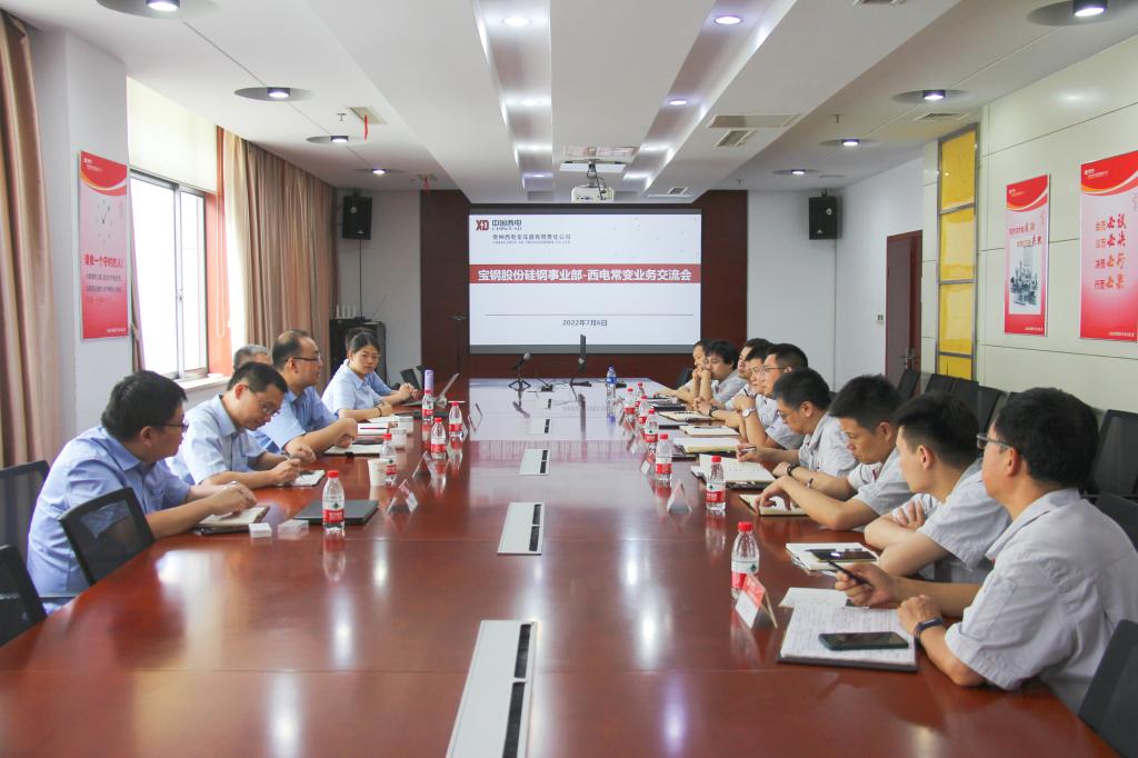 日前,宝钢股份硅钢事业部党委书记、总经理沈侃毅一行到西电常变开展调研。西电常变党委书记、董事长、总经理龚宜祥,副总经理张良县、江霖以及相关部门负责人热情接待宝钢硅钢事业部领导并共同开展了工作交流。