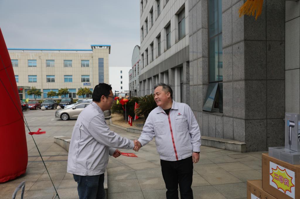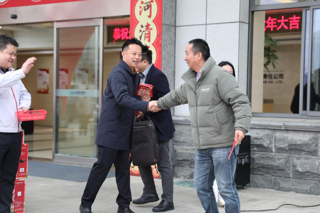 一大早,公司党委书记、董事长、总经理张良县率班子成员、全体中层干部,列队迎接员工上班,为大家送上新春祝福和抽奖贺卡,鼓励大家团结协作,在新的一年里凝心聚力、踔厉奋发,为实现企业的经营目标而努力拼搏。